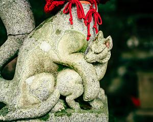Kitsune figure at Asahiinarisha, a small shrine on Takao-san in western Tokyo prefecture.