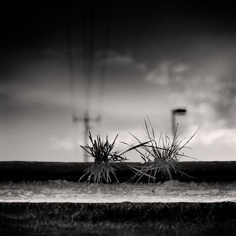 The sky and power lines reflected in a puddle. Hoffman Estates, IL.