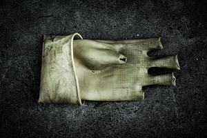 A discarded rubber glove on a sidewalk in Shanghai