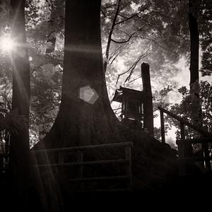 A hokora, a sort of miniature Shinto shrine, at the base of a large tree in Shakujii Park in Tokyo’s Nerima Ward.