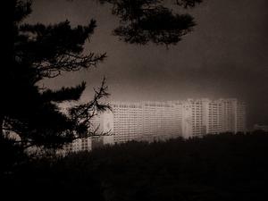 In Korea, I stayed out all night more times than I can count, and would sometimes conclude the affair with a rambling walk with a camera on my way home. One such time, I found myself on the side of a mountain, on a path behind a temple, listening to monks chanting in the distance while mist filtered through the pines, leading my surroundings to express themselves in muted tones that hid the dawn. Looking down into the valley, I could see one of the massive apartment complexes that dominated my city, but just the one. Everything beyond was swallowed by the mist.
